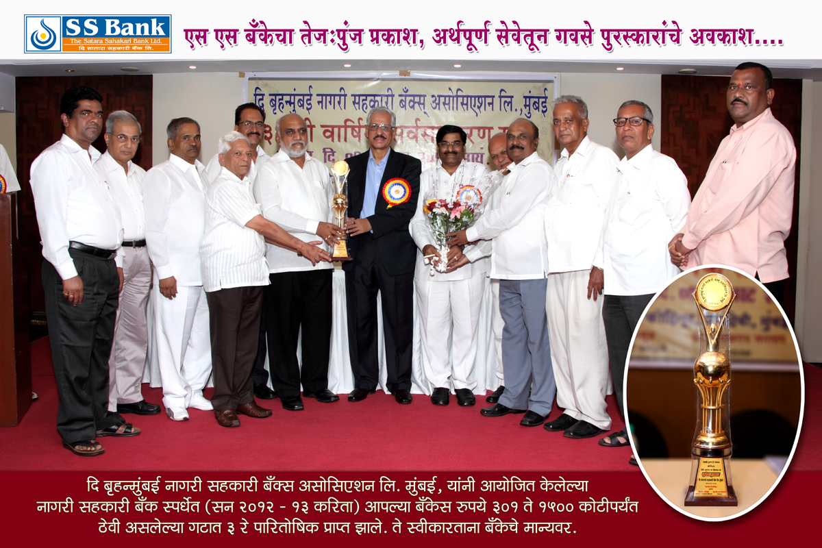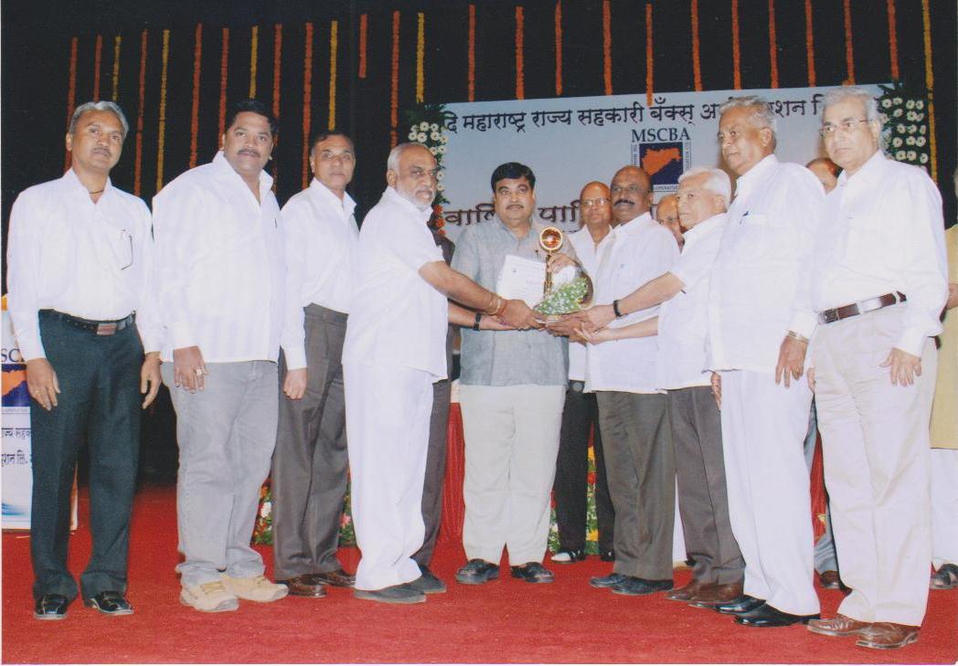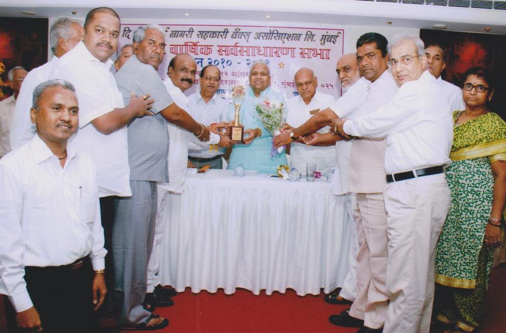 First Award "Late. Padmabhushan Vasantdada Patil Utkrushath Nagari sahakari Bank Award For "Maharashtra State Co-Op. Bank's Association Ltd. , Mumbai," In Mumbai region More than Rs. 100 Crore Deposits Nagari Sahakari Bank's"